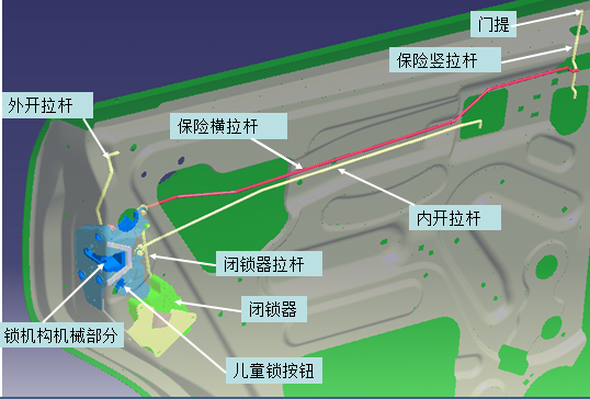 •車(chē)門(mén)鎖主要指前、后側門(mén)鎖機構總成 ;